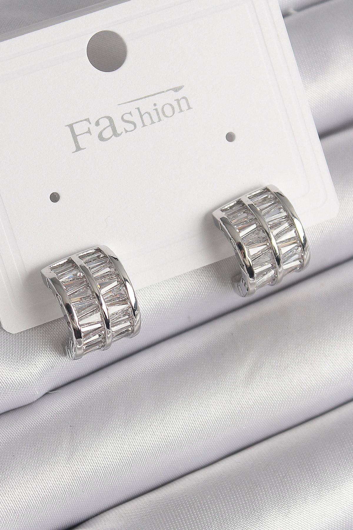 Pirinç Gümüş Renk Çift Sıra Zirkon Taşlı Kadın Küpe