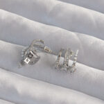 Pirinç Gümüş Renk İncili Çoklu Zirkon Taşlı Yarım Halka Küpe