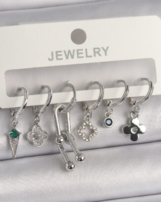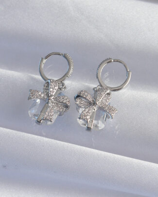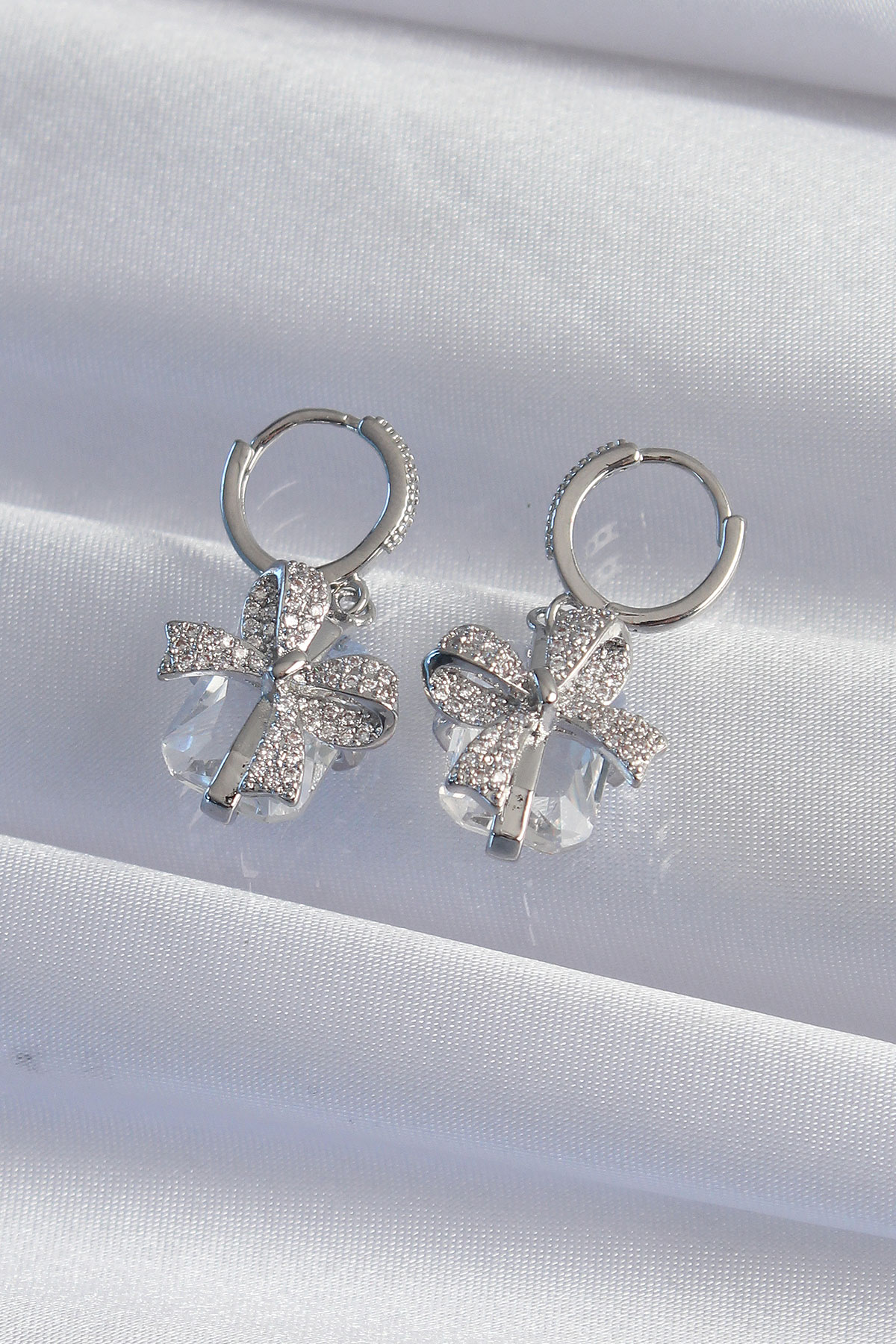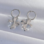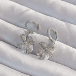 Pirinç Gümüş Renk İri Zirkon Taşlı Fiyonk Model Halka Küpe