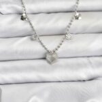 Pirinç Gümüş Renk Kalp Model Kadın Kolye