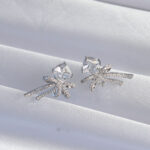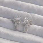 Pirinç Gümüş Renk Kare Zirkon Taşlı Fiyonk Küpe