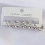 Pirinç Gümüş Renk Oval Küpe Seti