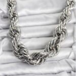 Pirinç Gümüş Renk Sarmal Halat Model Kadın Kolye
