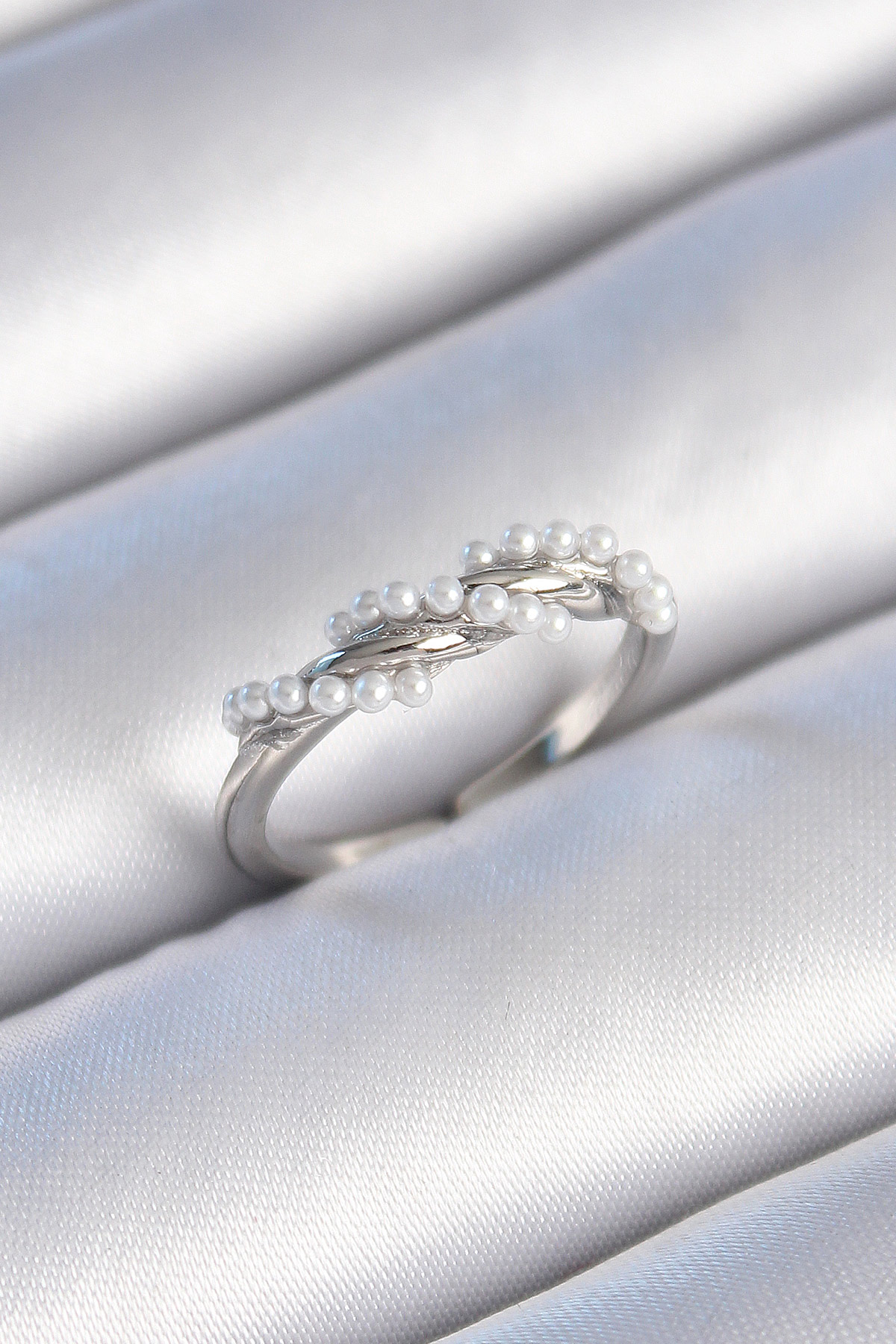 Pirinç Gümüş Renk Sarmal İnci Model Kadın Yüzük