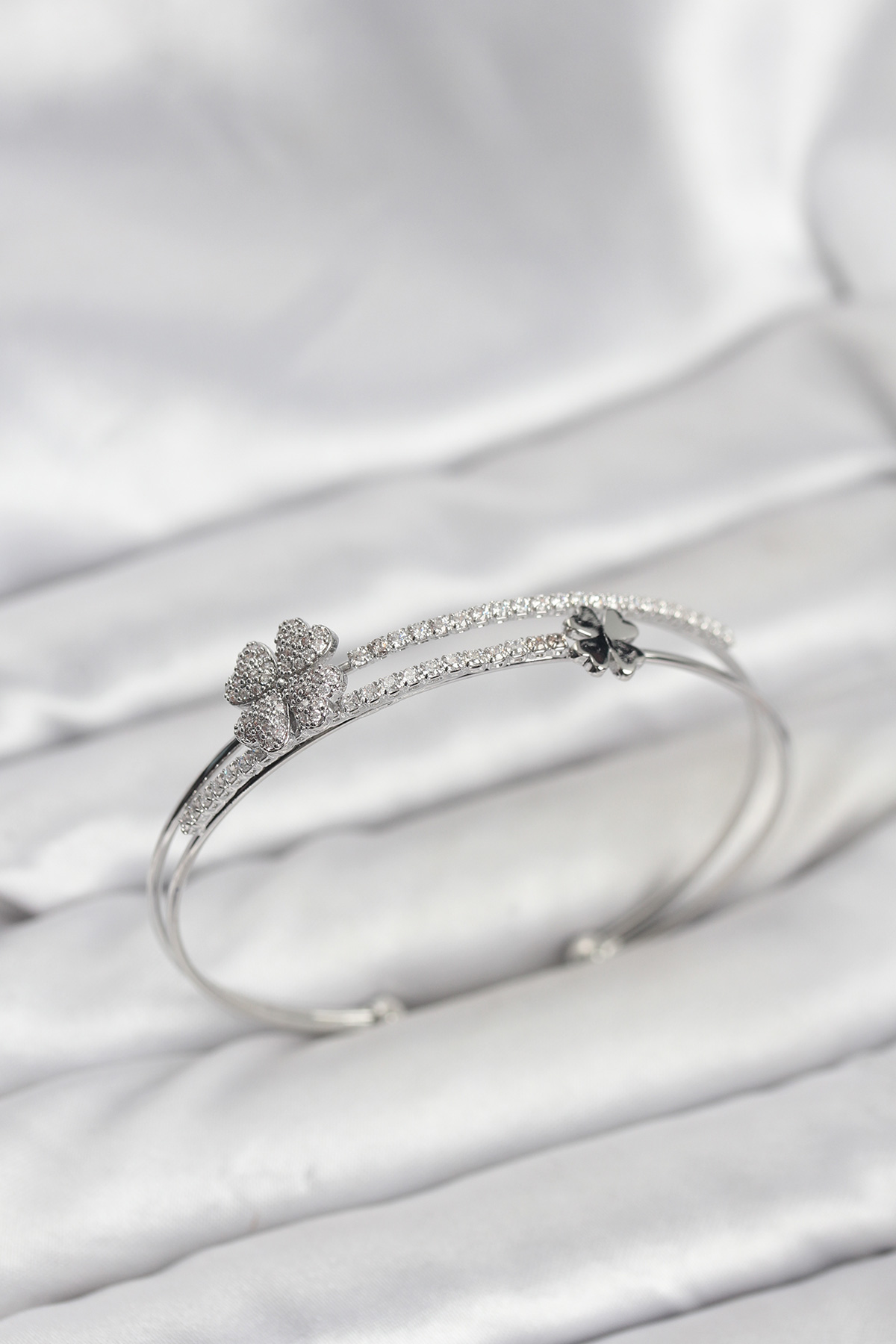 Pirinç Gümüş Renk Yonca Model Kadın Bileklik