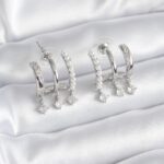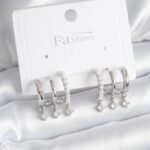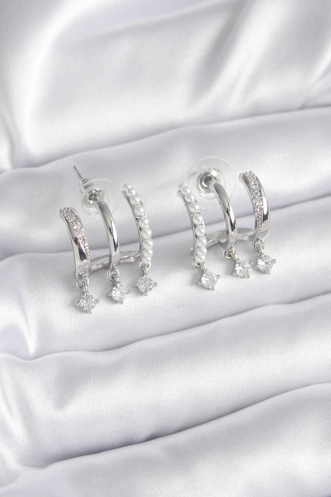 Pirinç Gümüş Renk Zirkon Taş Detay İncili Kadın Küpe