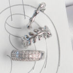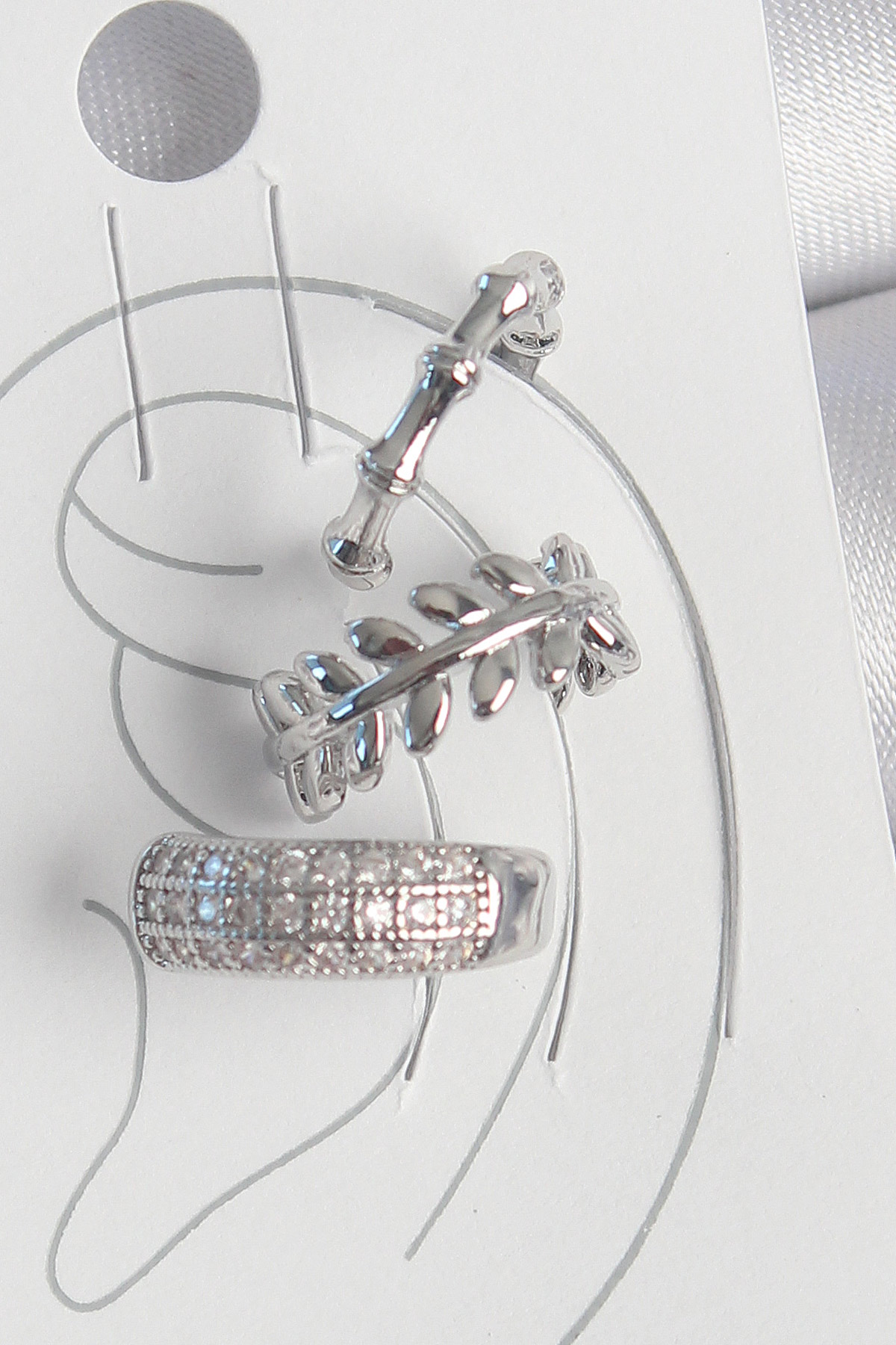 Pirinç Gümüş Renk Zirkon Taşlı 3’Lü Model Yaprak Figür Kadın Kıkırdak Küpe