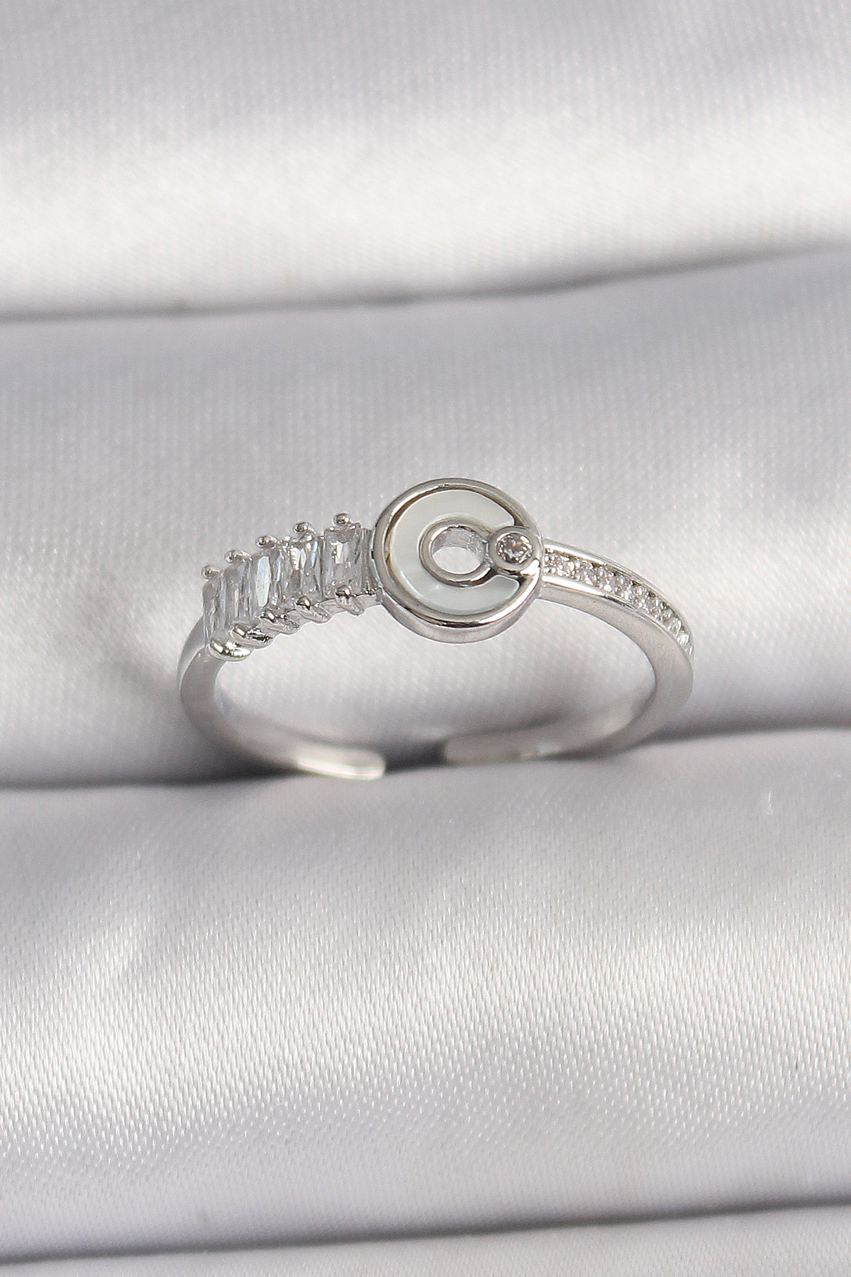 Pirinç Gümüş Renk Zirkon Taşlı Ayarlanabilir Kadın Yüzük