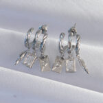 Pirinç Gümüş Renk Zirkon Taşlı Çoklu Aksesuarlı Yarım Halka Kaburga Küpe