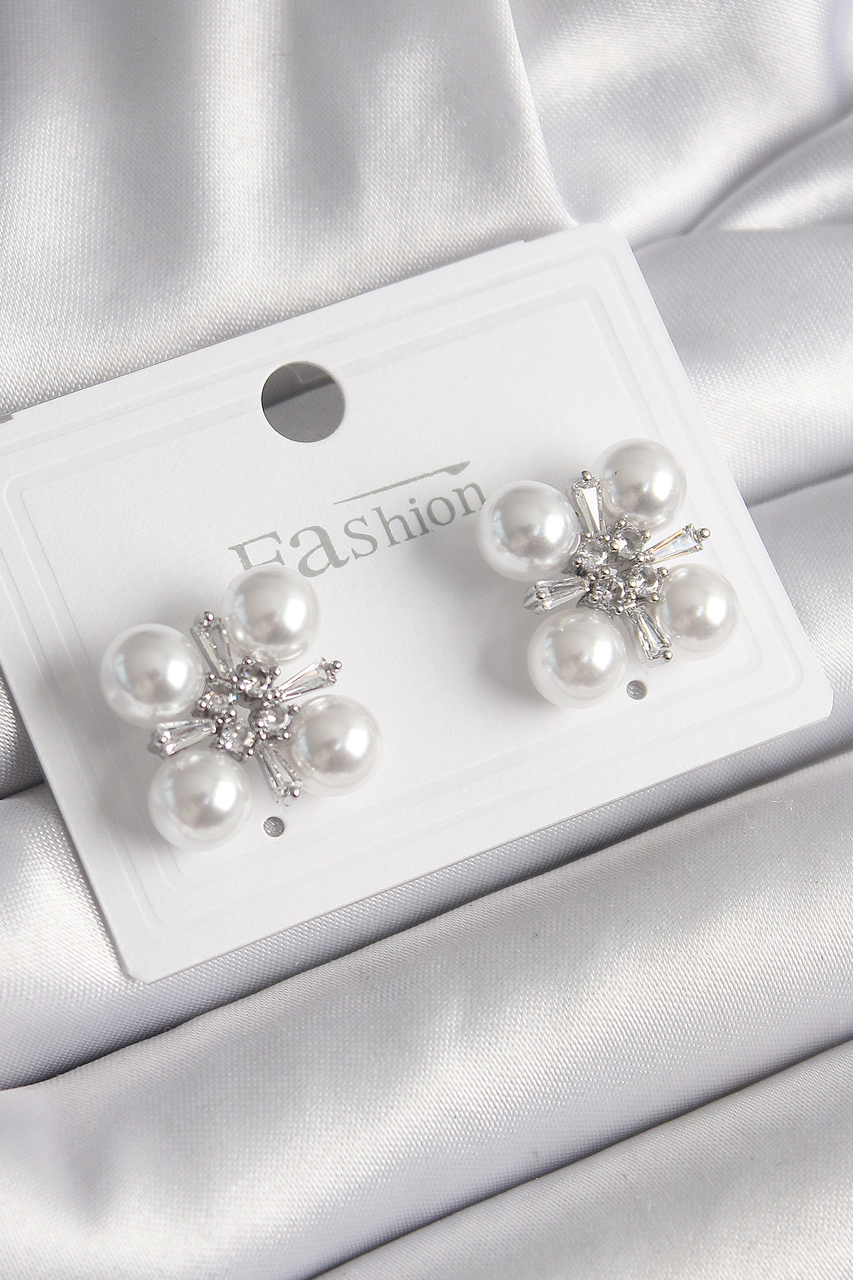 Pirinç Gümüş Renk Zirkon Taşlı İncili Kadın Küpe