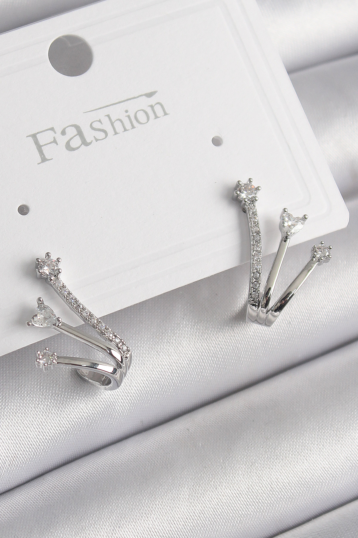 Pirinç Gümüş Renk Zirkon Taşlı Kadın Küpe