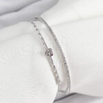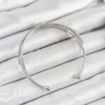 Pirinç Gümüş Renk Zirkon Taşlı Kalp Detaylı Kadın Bileklik