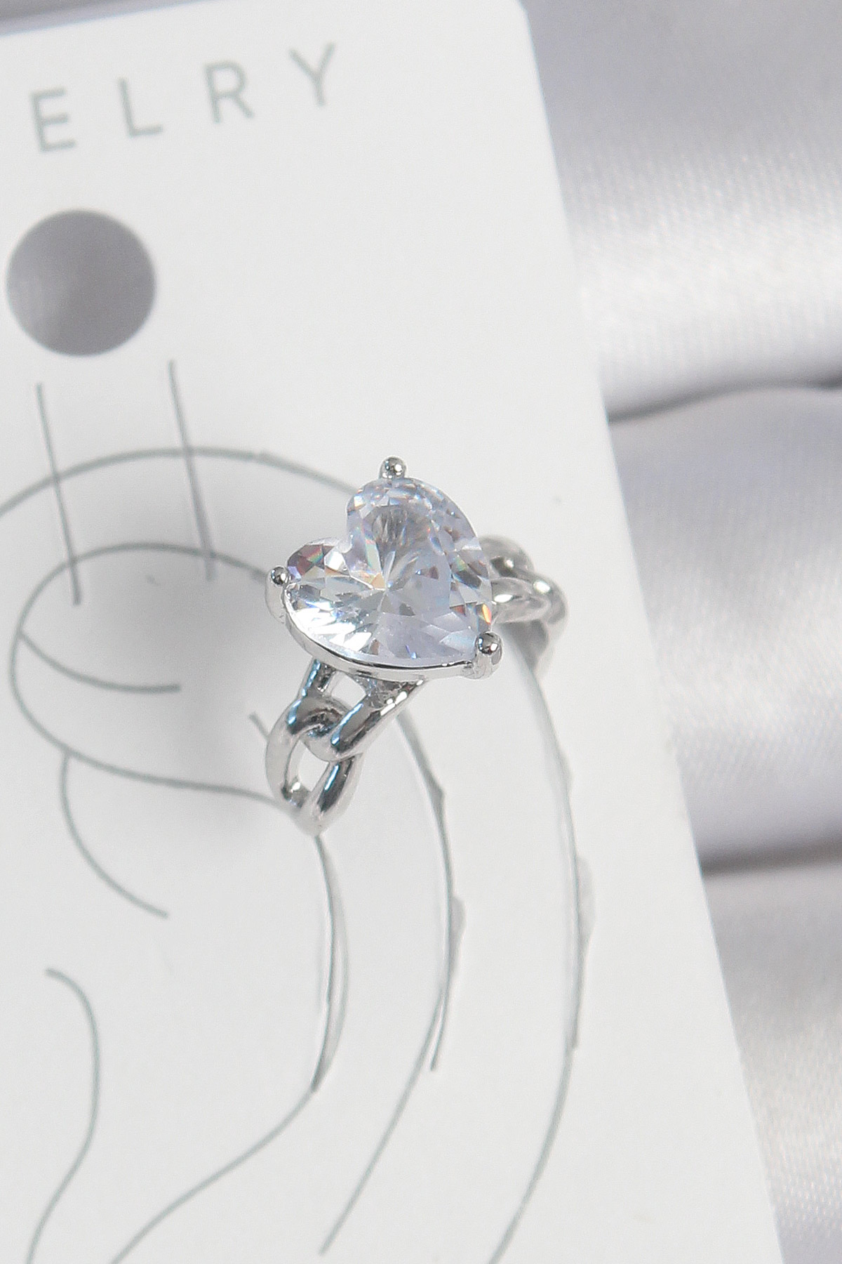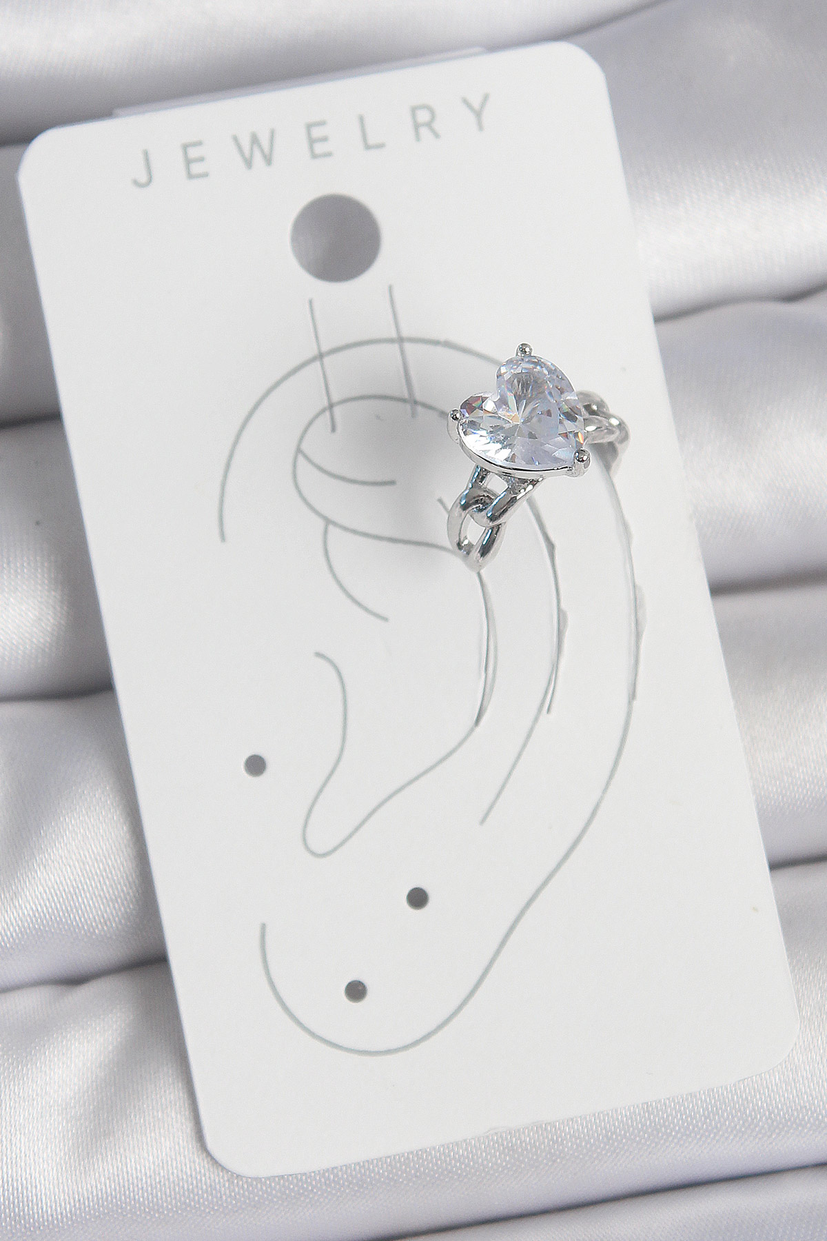Pirinç Gümüş Renk Zirkon Taşlı Kalp Model Kadın Kıkırdak Küpe
