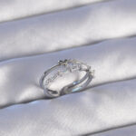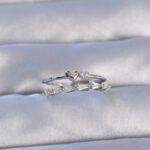 Pirinç Gümüş Renk Zirkon Taşlı Kalpli 2li Görünüm Ayarlanabilir Yüzük