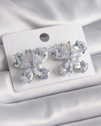 Pirinç Gümüş Renk Zirkon Taşlı Kelebek Model Kadın Küpe