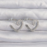 Pirinç Gümüş Renk Zirkon Taşlı Kıvrımlı Yarım Kalp Küpe