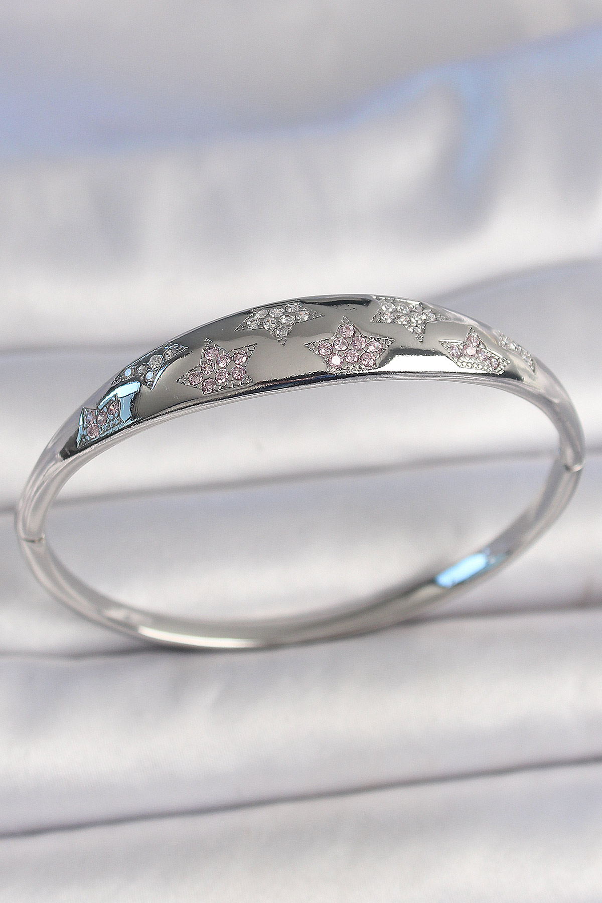 Pirinç Gümüş Renk Zirkon Taşlı Yıldız İşlemeli Kadın Kelepçe