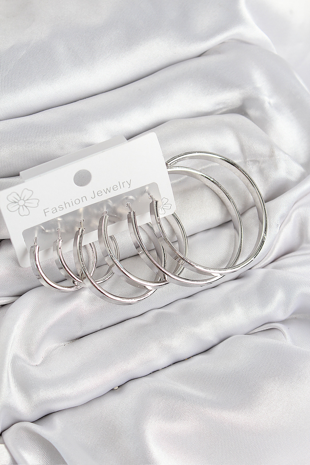 Pirinç Halka Model Gümüş Renk Kadın Set Küpe