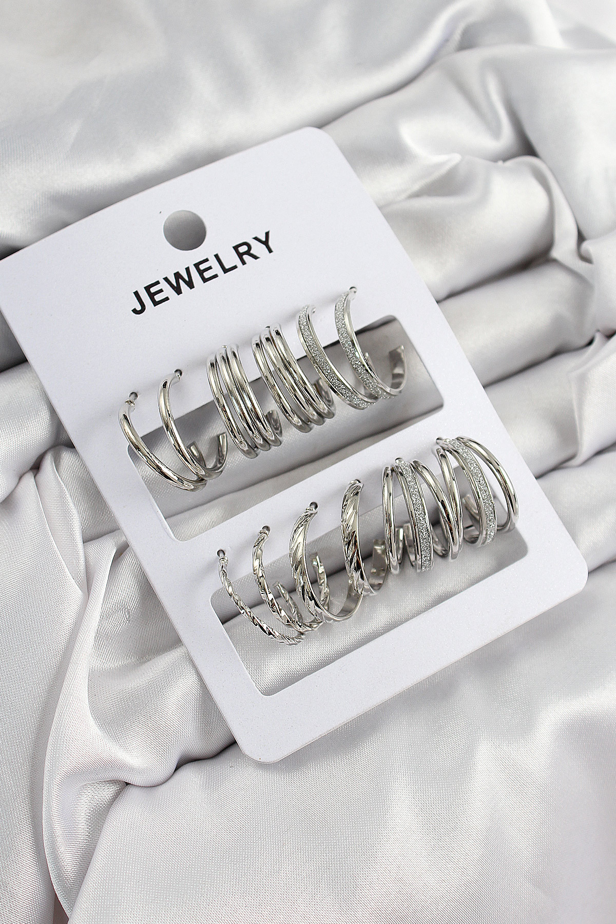 Pirinç Karışık Halka Model Gümüş Renk 6 Çift Kadın Küpe Set