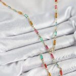 Pirinç Renkli Zirkon Taşlı Dikdörtgen Model Gold Renk Kadın Y Kolye