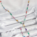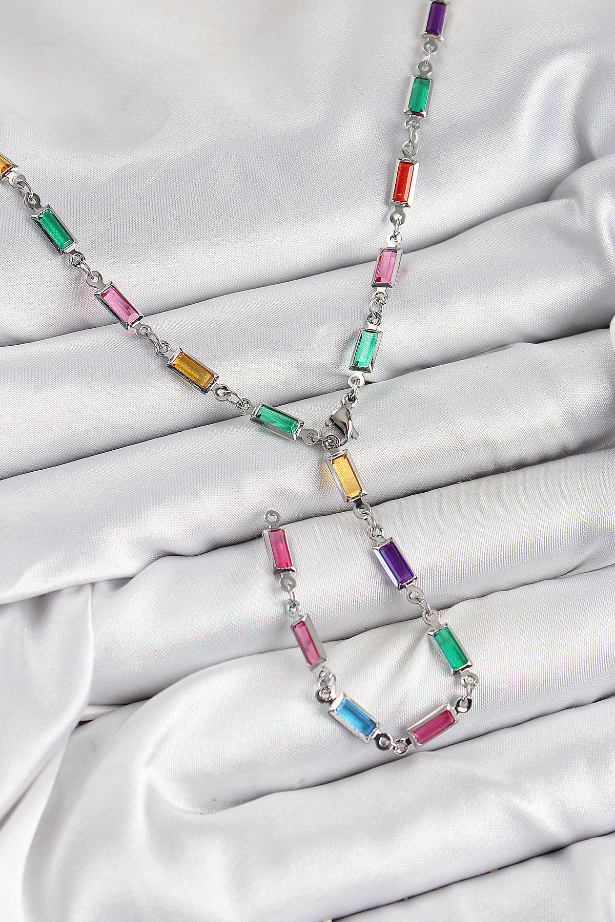 Pirinç Renkli Zirkon Taşlı Dikdörtgen Model Gümüş Renk Kadın Y Kolye