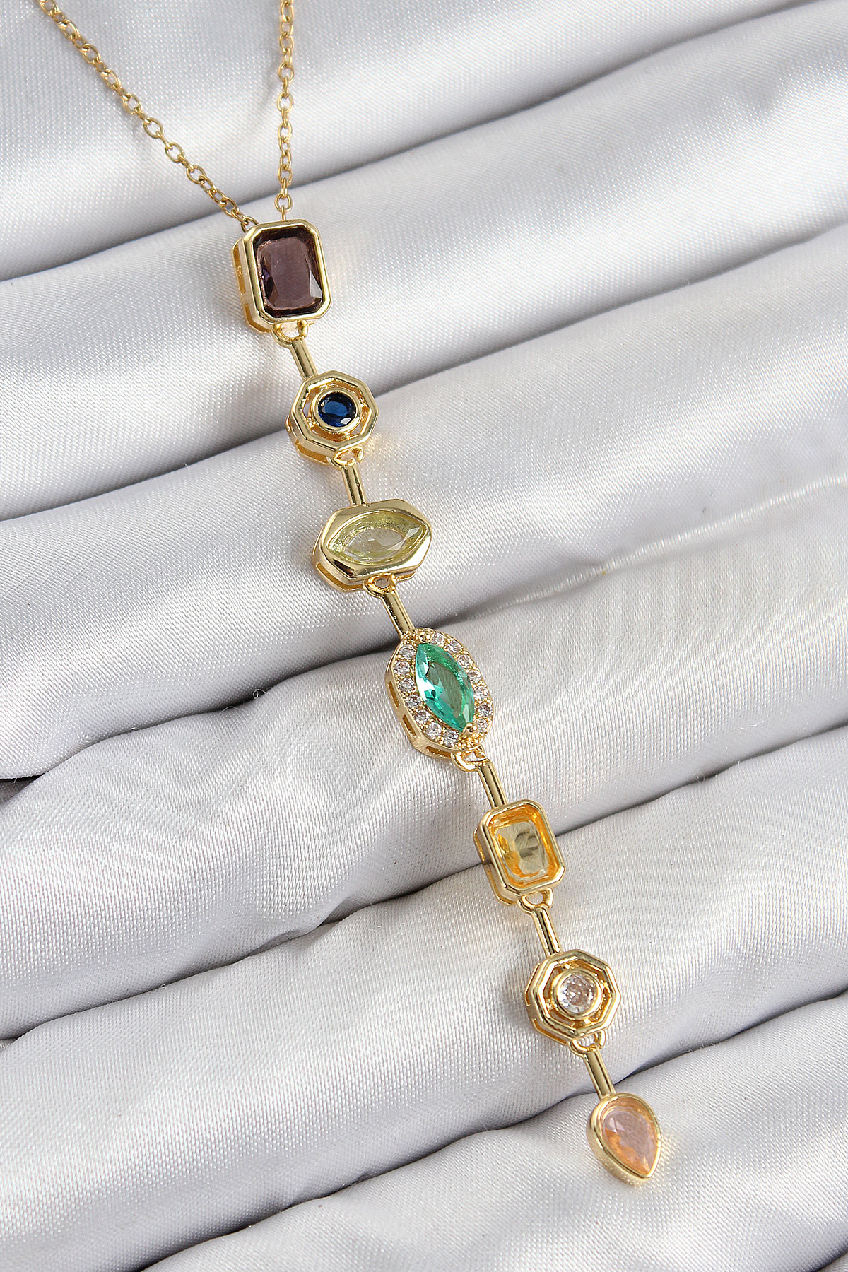 Pirinç Renkli Zirkon Taşlı Model Gold Renk 7 Element Kadın Y Kolye