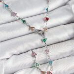 Pirinç Renkli Zirkon Taşlı Üçgen Model Gümüş Renk Kadın Y Kolye
