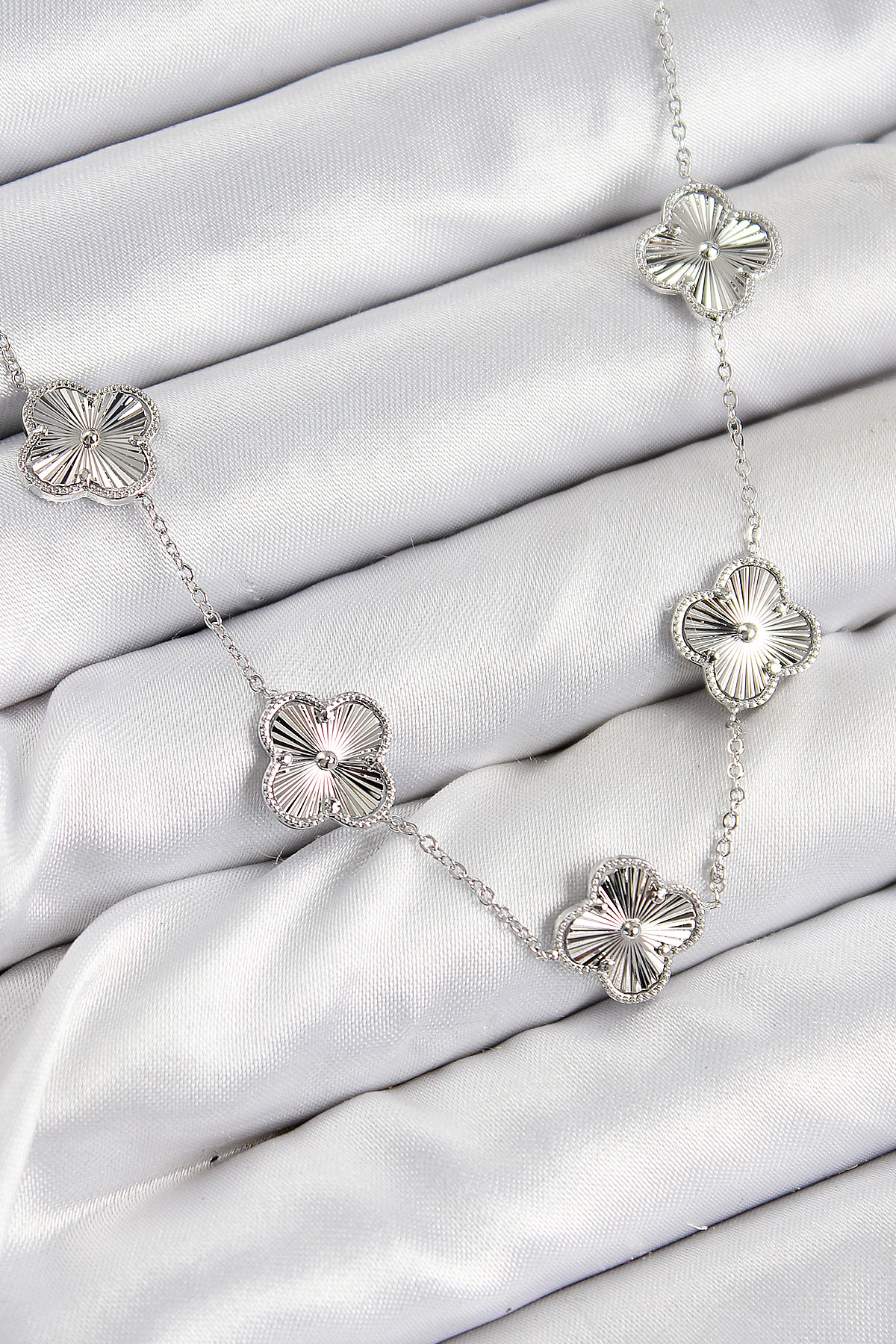 Pirinç VIP Yonca Model Gümüş Renk Kadın Kolye