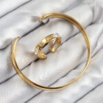 Pirinç Zirkon Taşlı Ayrık Model Gold Renk Bileklik Yüzük Set