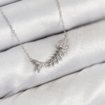 Pirinç Zirkon Taşlı Balık Kılçığı Model Gümüş Renk Kadın Kolye