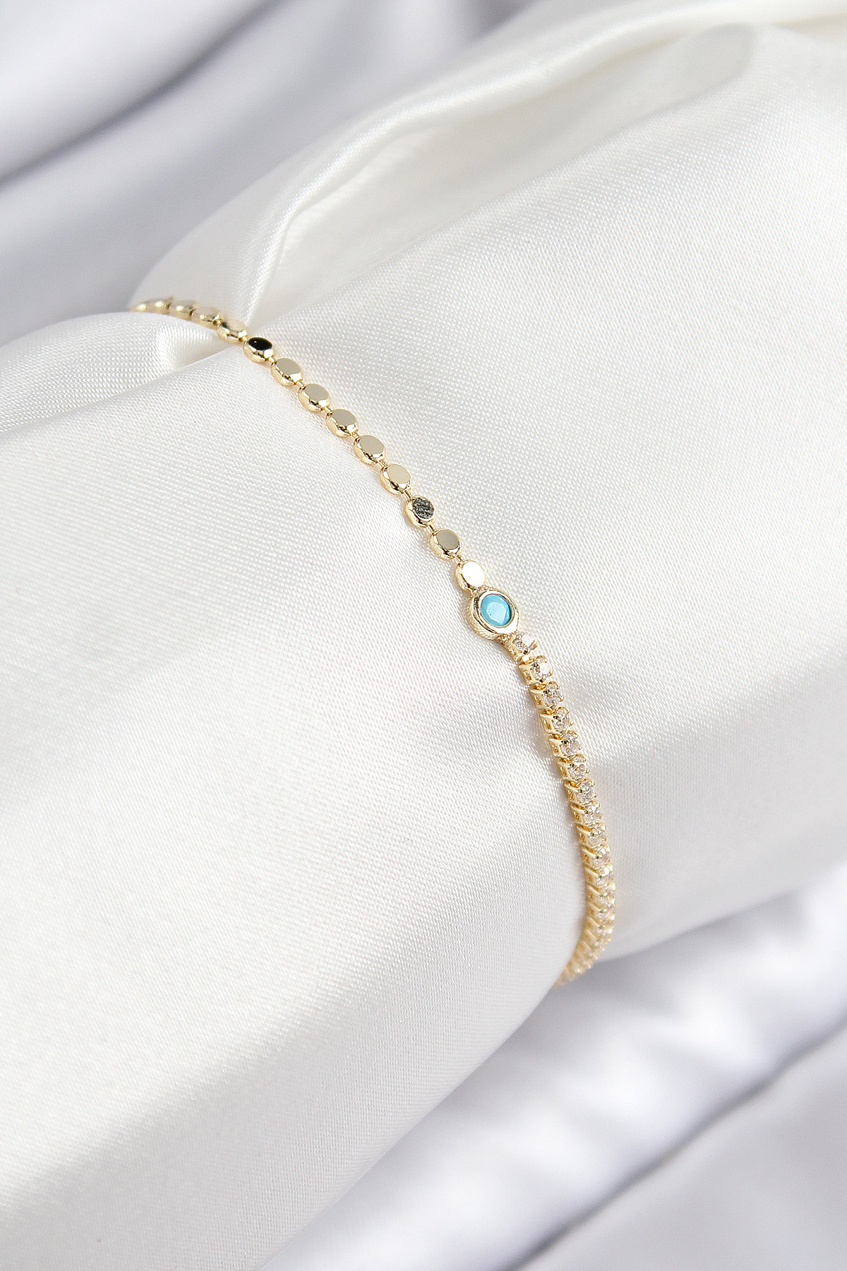 Pirinç Zirkon Taşlı Boncuk Model Ezme Zincir Gold Renk Kadın Bileklik