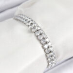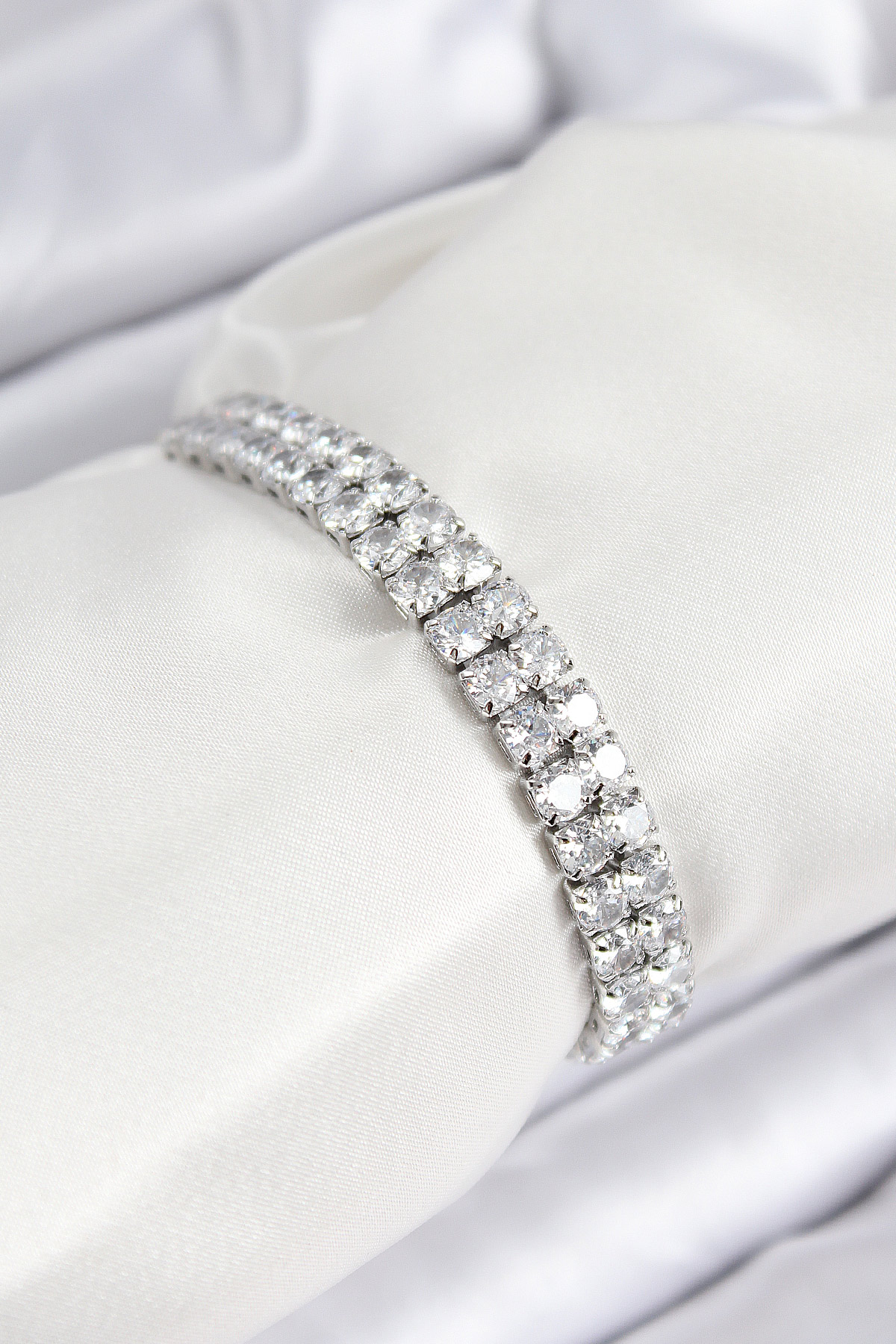 Pirinç Zirkon Taşlı Çift Sıra Kare Model Gümüş Renk Asansörlü Kadın Bileklik