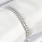 Pirinç Zirkon Taşlı Çift Sıra Model Gümüş Renk Asansörlü Kadın Bileklik