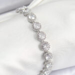 Pirinç Zirkon Taşlı Daire Baget Model Gümüş Renk VIP Seri Kadın Bileklik