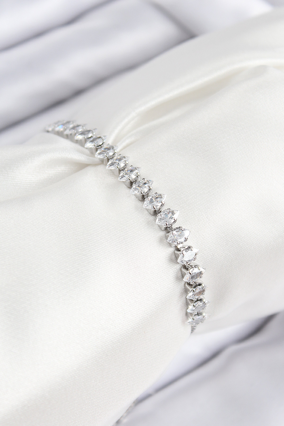 Pirinç Zirkon Taşlı Damla Model Gümüş Renk Asansörlü Kadın Bileklik