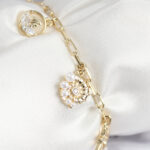 Pirinç Zirkon Taşlı Deniz Kabuğu Model Gold Renk Kadın Bileklik