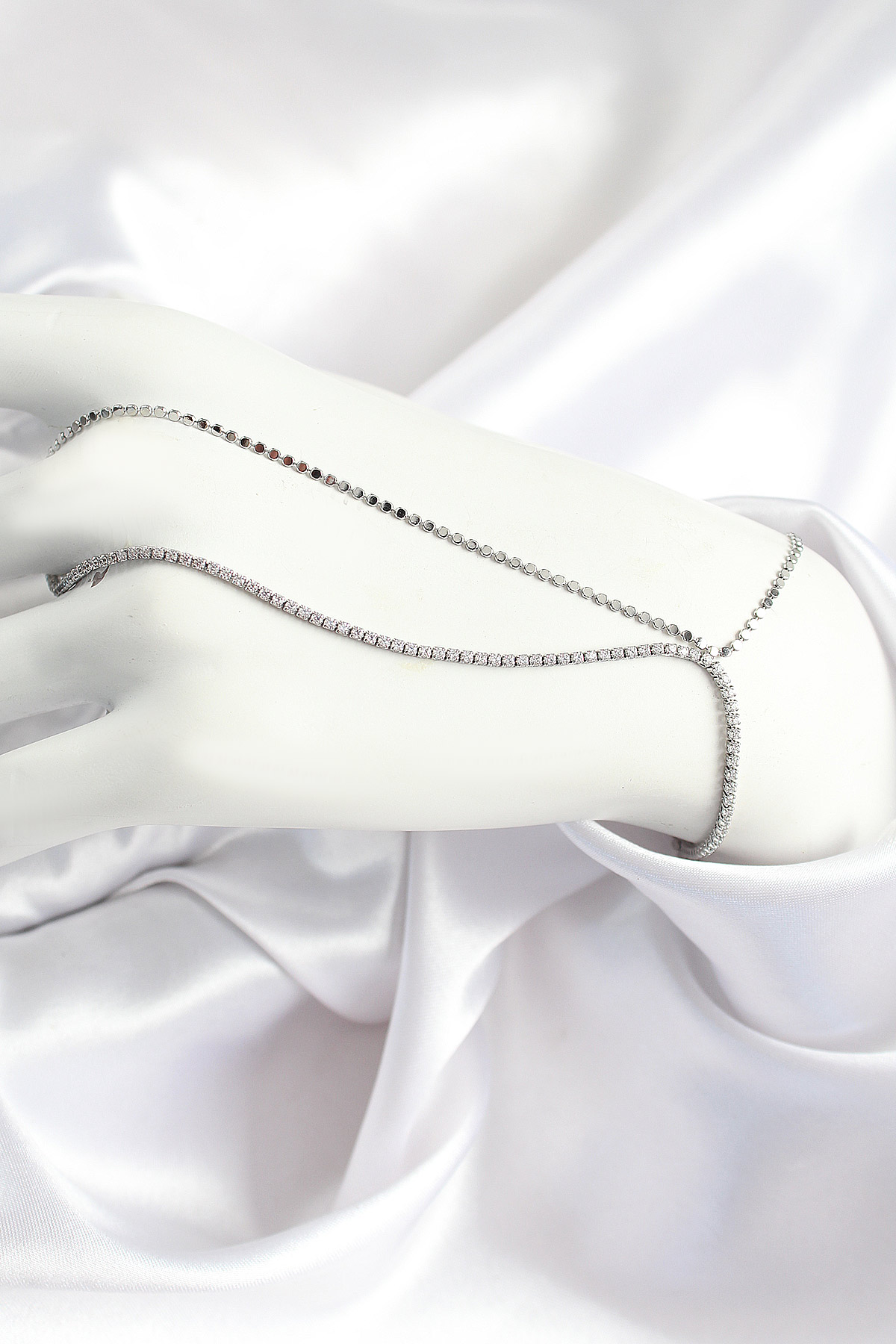Pirinç Zirkon Taşlı Ezme Zincir Model Gümüş Renk Kadın Şahmeran