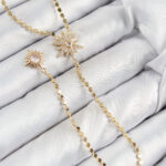 Pirinç Zirkon Taşlı Ezme Zincirli Kutup Yıldızı Model Gold Renk Y Kolye