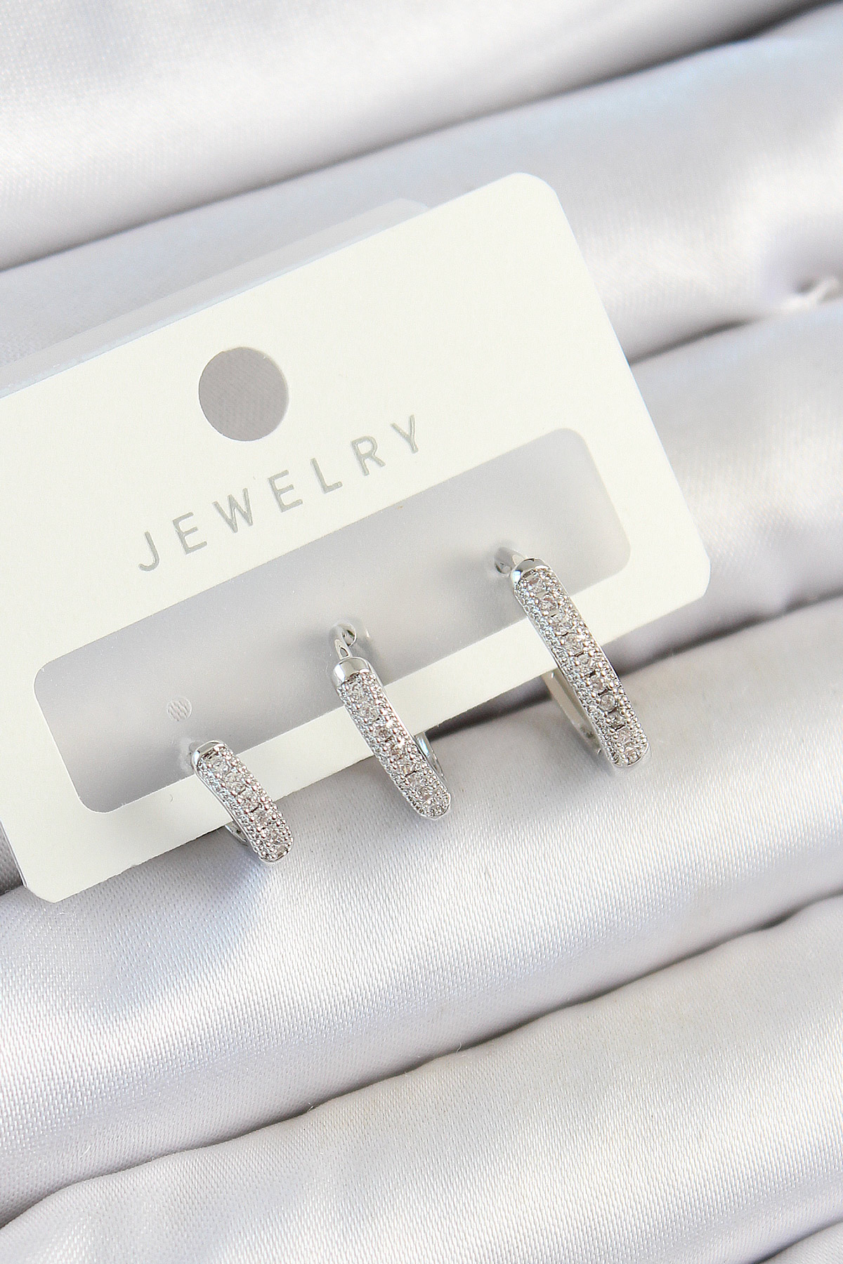 Pirinç Zirkon Taşlı Halka Model Gümüş Renk 3’lü Çift Kadın Küpe Set