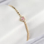 Pirinç Zirkon Taşlı Kalp Model Ezme Zincir Gold Renk Kadın Bileklik
