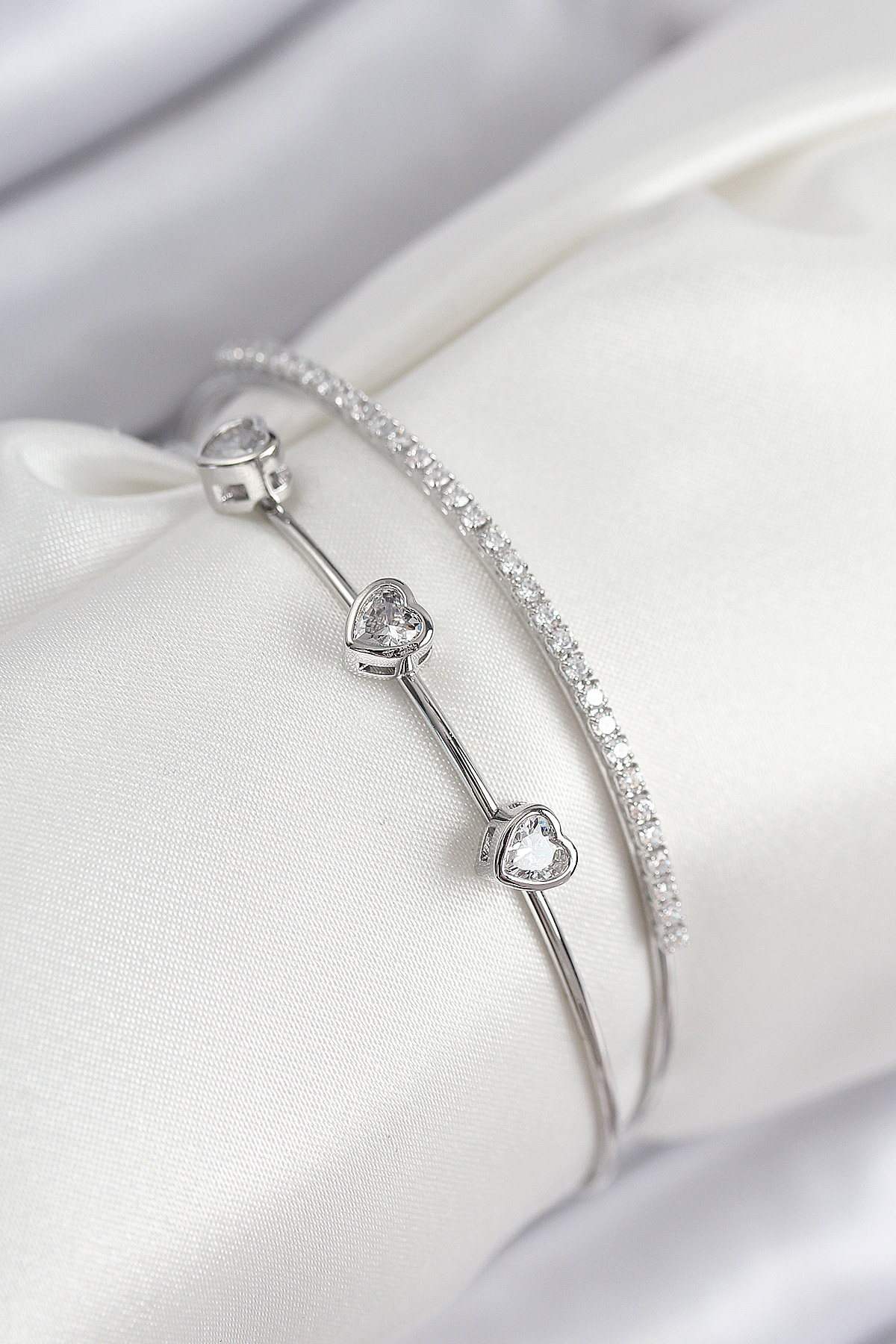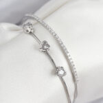 Pirinç Zirkon Taşlı Kalp Model Gümüş Renk Kadın Bileklik