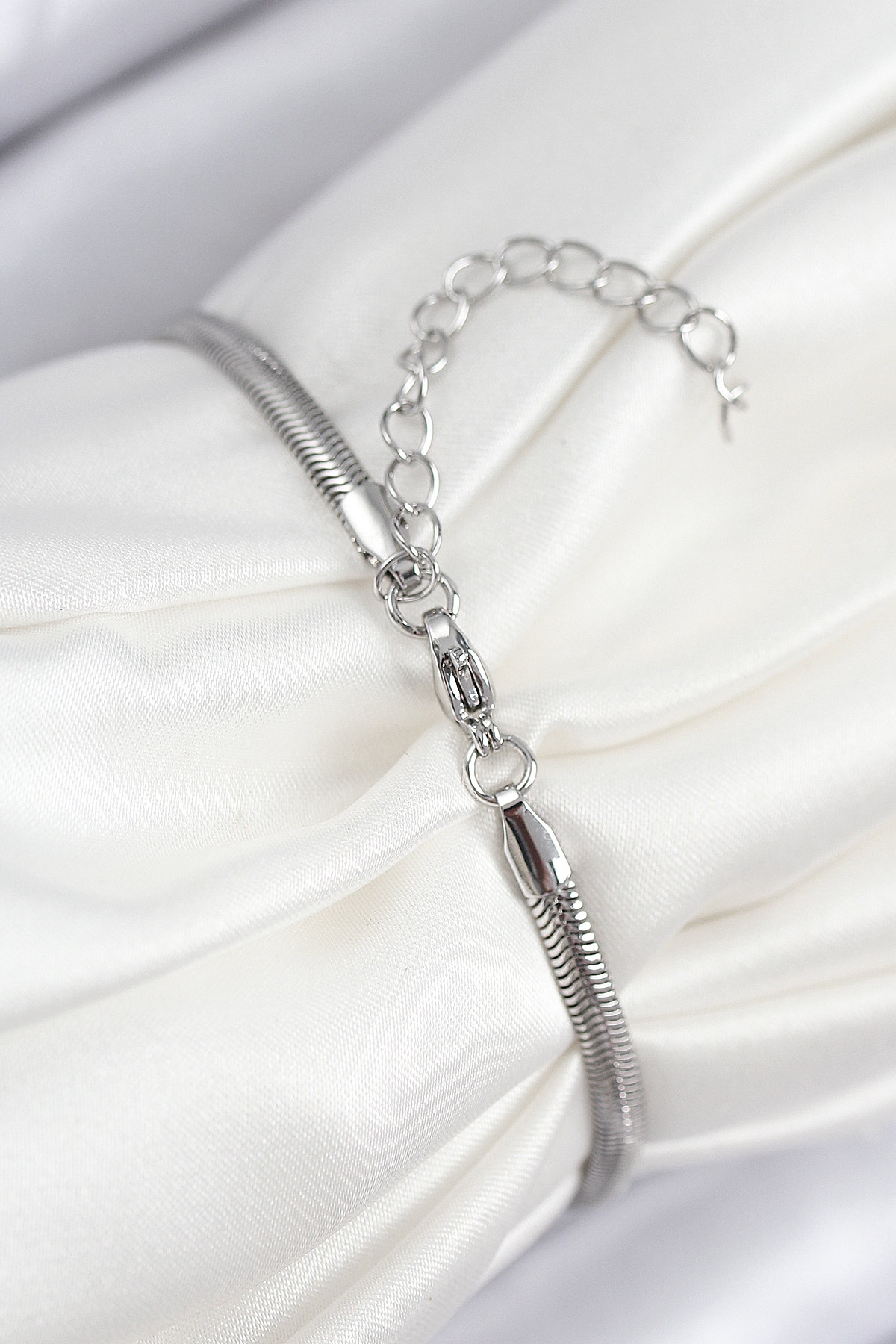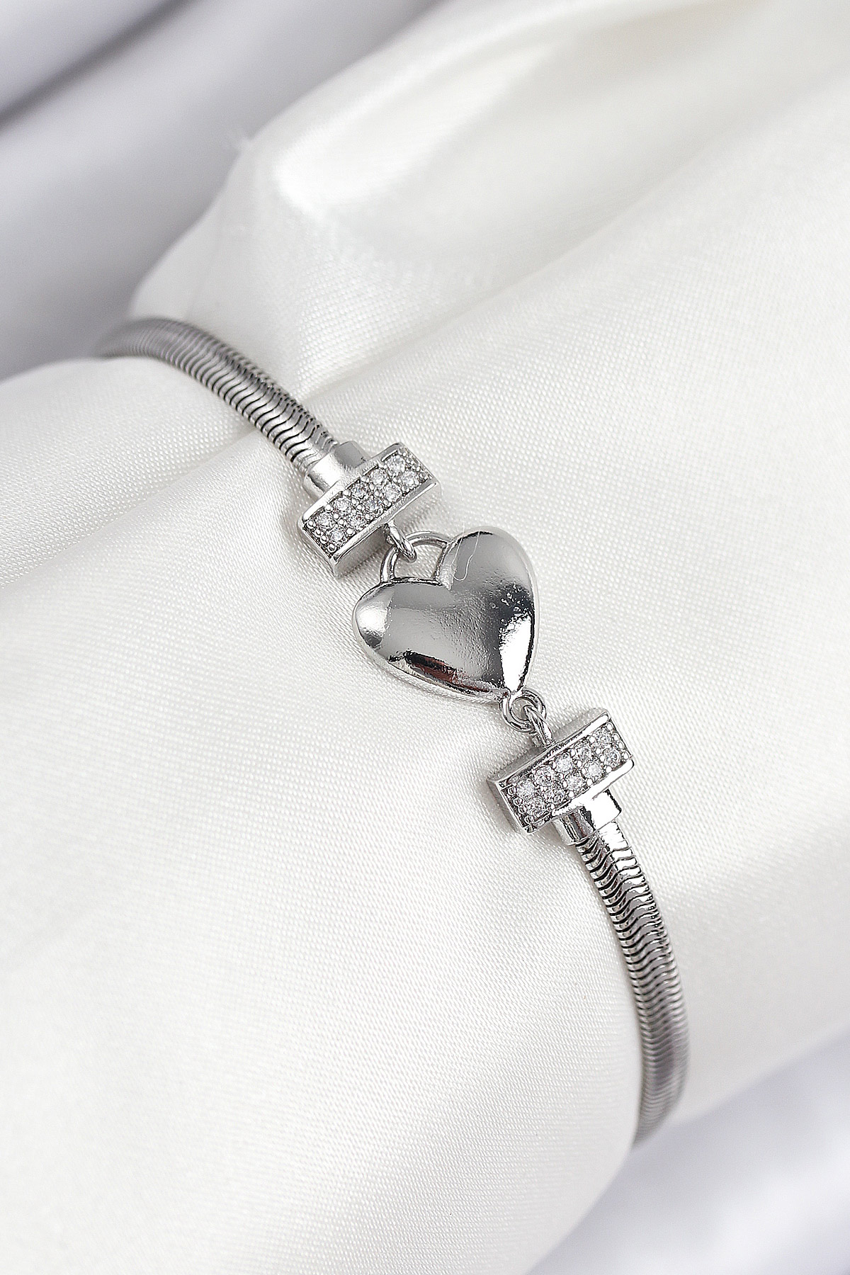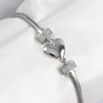 Pirinç Zirkon Taşlı Kalp Model Gümüş Renk Kadın Bileklik