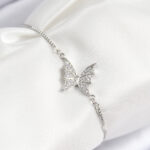 Pirinç Zirkon Taşlı Kelebek Model Gümüş Renk Asansörlü Kadın Bileklik