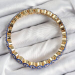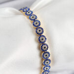 Pirinç Zirkon Taşlı Lacivert Nazar Model Gold Renk Lastikli Kadın Bileklik