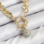 Pirinç Zirkon Taşlı Nazar Boncuk Detaylı Klasik Zincir Model Gold Renk Kadın Kolye