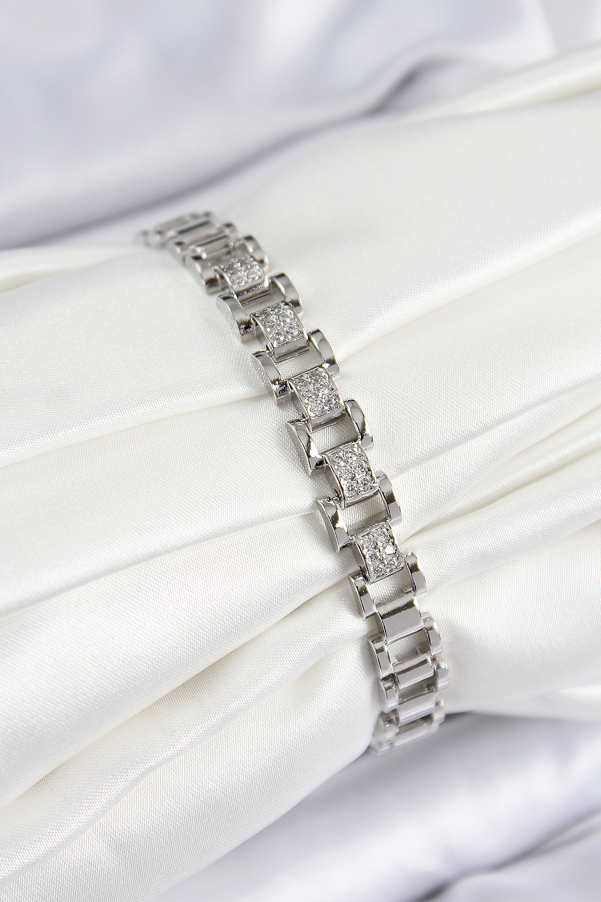 Pirinç Zirkon Taşlı Parçalı Model Gümüş Renk Kadın Bileklik