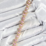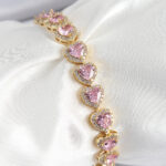 Pirinç Zirkon Taşlı Pembe Kalp Baget Model Gold Renk VIP Seri Kadın Bileklik