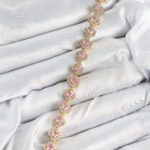 Pirinç Zirkon Taşlı Pembe Yonca Baget Model Gold Renk VIP Seri Kadın Bileklik