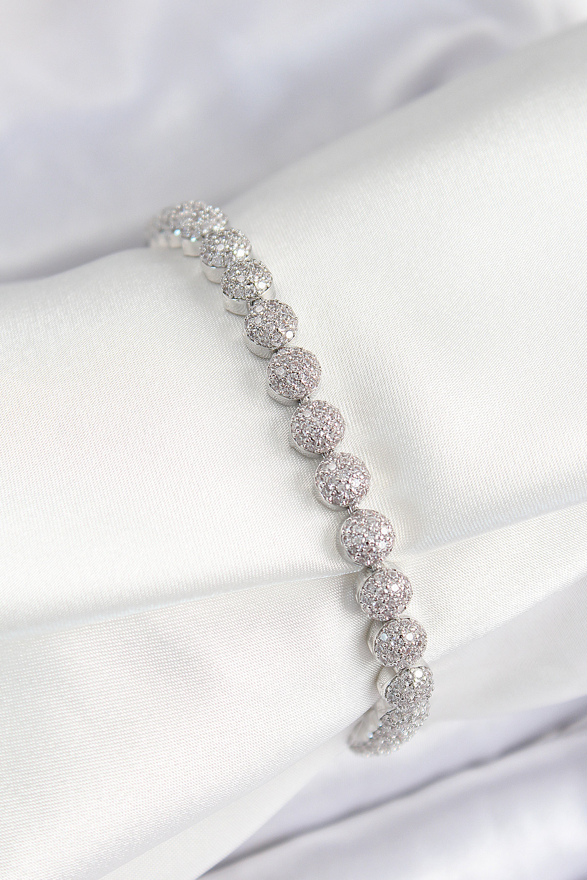 Pirinç Zirkon Taşlı Yarım Topcuk Model Gümüş Renk VIP Seri Kadın Bileklik