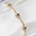 Pirinç Zirkon Taşlı Yıldız Model Gold Renk Kadın Bileklik